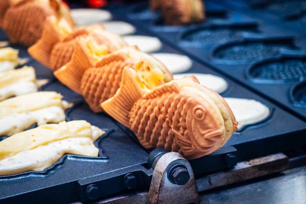 Тайяки — это мягкая вафля в форме рыбы с начинкой. В традиционных вариантах бобовая паста анко, а в более современных — заварной крем, шоколад и другие начинки, из-за чего лакомство на вкус больше похоже на небольшое пирожное.