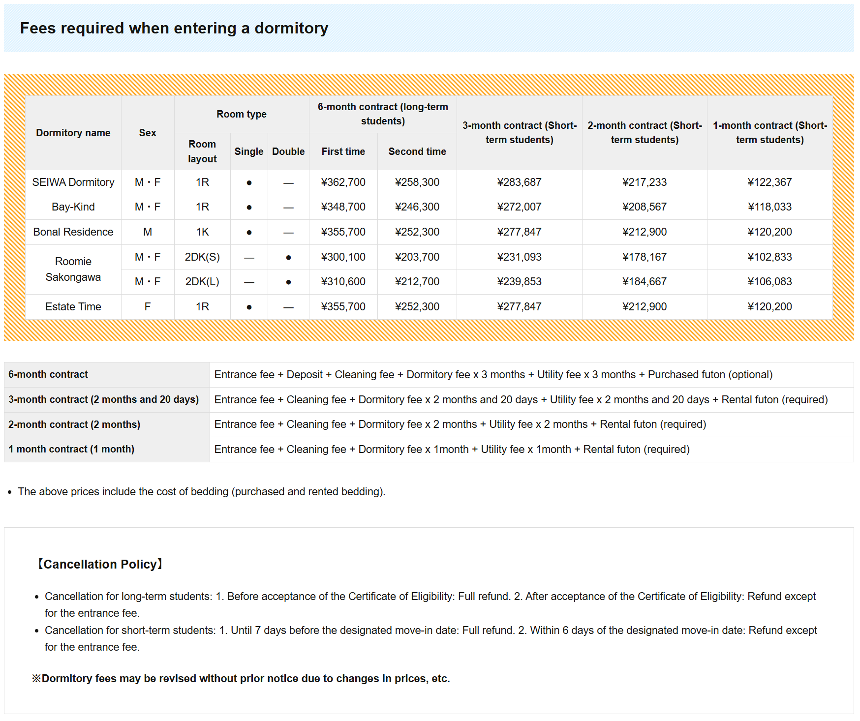 Долгосрочные студенты: оплата по 3 месяца. Контракт строго на 6 месяцев (с апреля/октября/января) или 9 месяцев (с июля). Раннее расторжение или продление не предусмотрено — проживание нужно оплатить полностью за весь срок контракта.